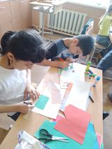 В план дня входило изготовление бумажных ромашек к районному мероприятию, посвященному Дню семьи и верности. Ребята с увлечением делали цветы и даже захотели их забрать домой.