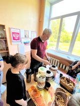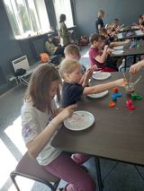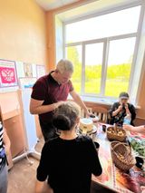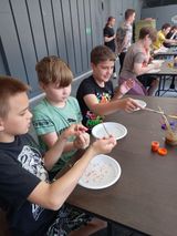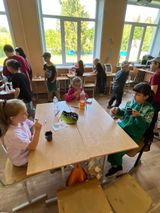 Сегодня у нас снова был насыщенный день. После утренней зарядки и завтрака ребят ждала профориентационная встреча в рамках программы «Неделя без турникетов» с интересным человеком из нашего поселка – кондитером Валерией Булавкиной. Валерия рассказала ребятам о различных интересных фактах из истории своей профессии и о том, как она сама пришла к этой сфере деятельности. Ребят очень увлекла беседа, они задавали много вопросов и фотографировались с гостьей. В завершении беседы Валерия сделала детям небольшие подарки.