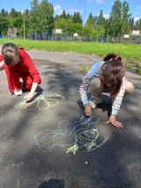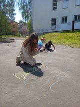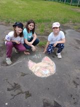 В конце дня ребята с удовольствием приняли участие в конкурсе рисунков на асфальте «Герои сказок А. С. Пушкина».