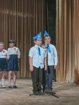 Сегодня смешенная, но очень дружная команда «Экипаж» нашего лагеря совершила полет на конкурс театрализованной патриотической песни «Аты-баты, шли солдаты». Наш «Экипаж» в составе шести мальчиков и пяти девочек выступил с песней «Перелетные птицы» и получил диплом за 2 место в конкурсе, набрав 94 балла из 100 и приз – настольную игру Крокозавр. Остальные ребята были группой поддержки в зрительном зале.