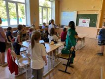 Первым этапом стал рассказ о роли русского языка в жизни каждого человека и о том, когда и где зародилась письменность. Прозвучало стихотворение о русском языке. Затем познакомили детей с истоками зарождения славянских букв, провели познавательную викторину, где были вопросы об азбуке, кириллице, о жизни Кирилла и Мефодия. Это позволило не только закрепить материал, но и дало возможность ребятам развлечься.
