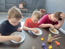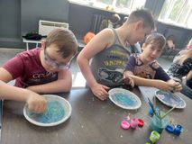 Сегодняшний день ребята нашего лагеря провели в Доме культуры «Химик», где сначала посмотрели фильм о лагере «Орленок», а затем побывали на мастер-классе по пластилинографии и смогли выполнить оригинальные композиции из пластилина на бумаге.