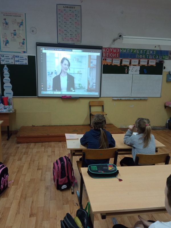 В начальной школе, 1–4 классы, поговорили о том, что такое семья и что объединяет всех членов семьи. Учащиеся рассказали о своих близких: с кем они любят проводить время, какие темы обсуждают, на кого больше всего похожи или хотели бы быть похожими, какие традиции есть в их семье. В продолжение урока школьники посмотрели фрагмент мультфильма «Трое из Простоквашино».