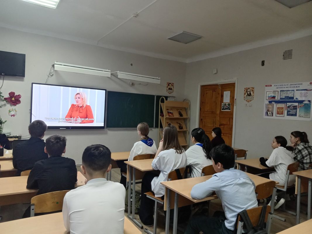 Особенностью этого занятия стало участие в качестве федерального спикера официального представителя МИД России Марии Захаровой. В своём обращении к школьникам она рассказала о работе Министерства иностранных дел, тонкостях дипломатической службы, знаниях и личных качествах, необходимых для этой профессии. Мария Захарова также подчеркнула, как современные молодые люди — через культуру, образование, спорт и открытость — могут влиять на формирование позитивного образа России в мире.
