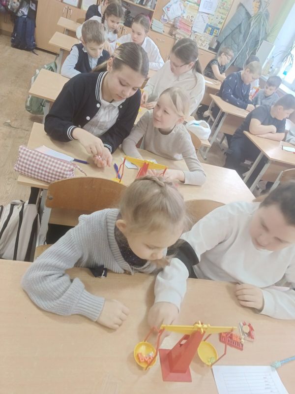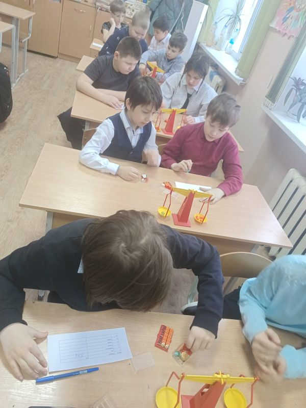 10 февраля в гости к обучающимся 2 класса пришли ребята из 4а класса. Практикум "История математической мысли" прошел на ура.Вначале поговорили о истории развития весов. Предположили, какие будут в будущем. Потом, ребята под руководством старших наставников 4а собирали модель чашечных весов, учились их уравновешивать и на практике определяли вес предметов. Всем очень понравилось. Многие решили, что им обязательно нужна такая модель домой.