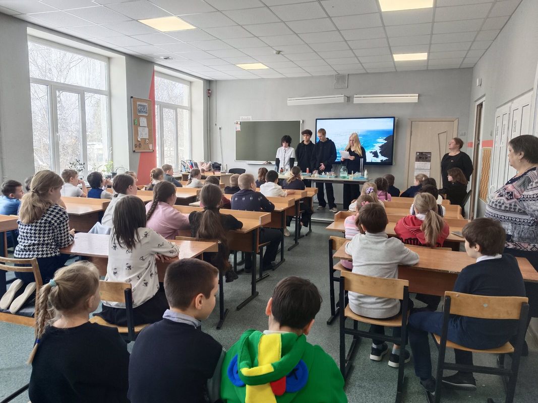 10 февраля обучающиеся начальной школы побывали у Волшебницы химии. Учащиеся 10 класса продемонстрировали ребятам, как с помощью химических реакций можно надуть шарик или создать лава-лампу. Ребята узнали, что вода бывает разной. Одна окрашивает индикатор в синий цвет, а другая в красный. В одной воде картофель тонет, а в другой плавает. Учащиеся создали слоновью пасту и даже устроили небольшой феерверк.